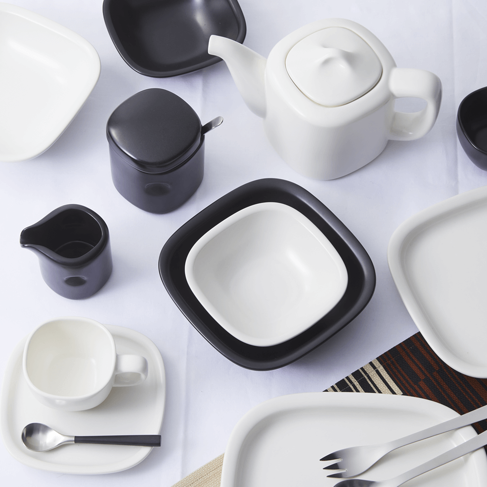 ハンドルとボディが滑らかにつながったフォルムが特徴の食器シリーズ
