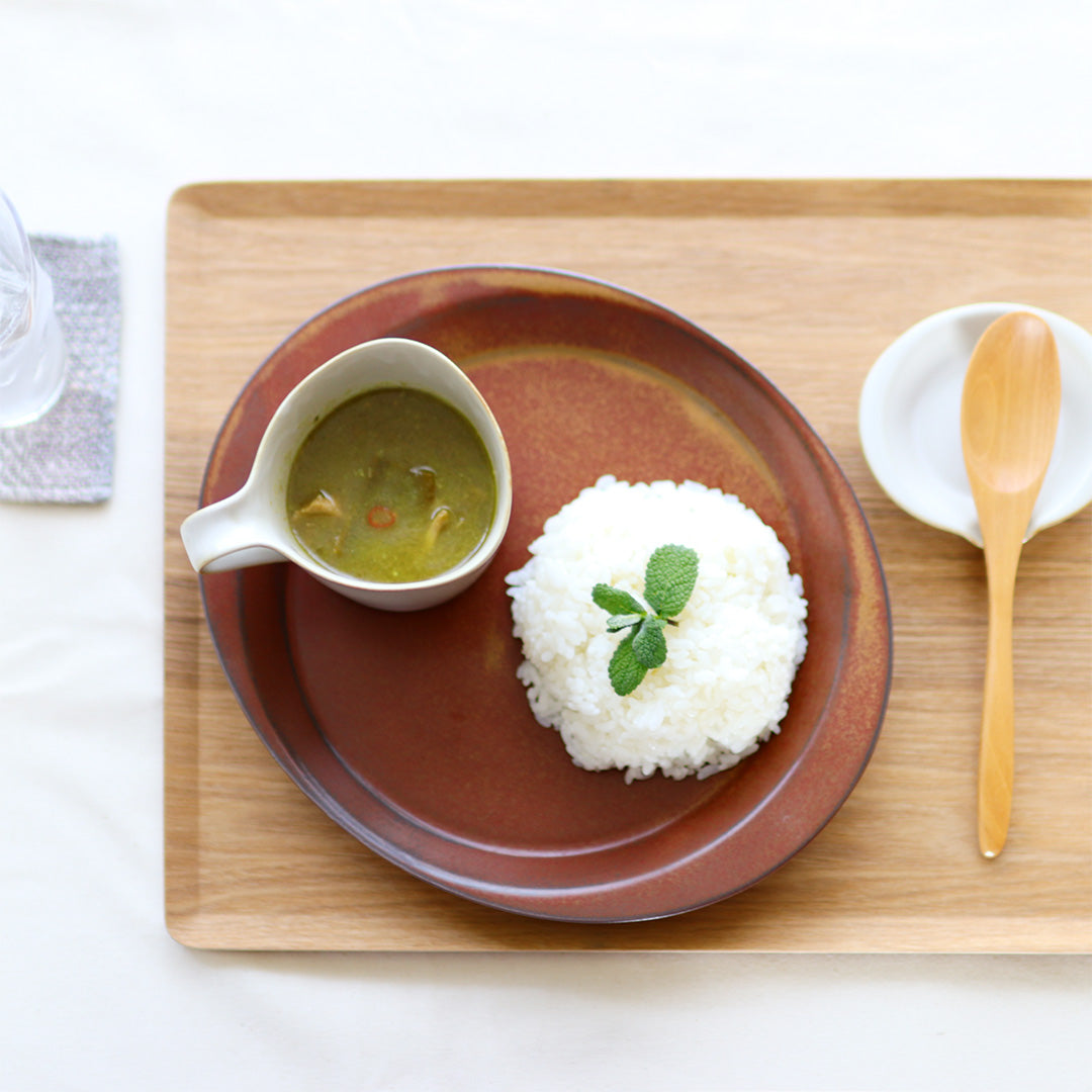 デュエットのプレートは、サイドにリムが付いた持ちやすいデザインが特徴です。LLサイズはワンプレートディッシュにちょどよいサイズ。ブラウンは、黄色から赤茶色の幅広い表情が生まれる窯変の釉薬を使用しており、一つ一つ異なる表情が楽しめます。