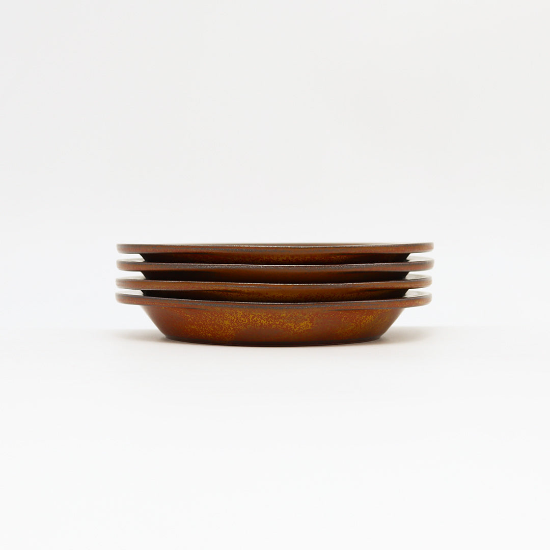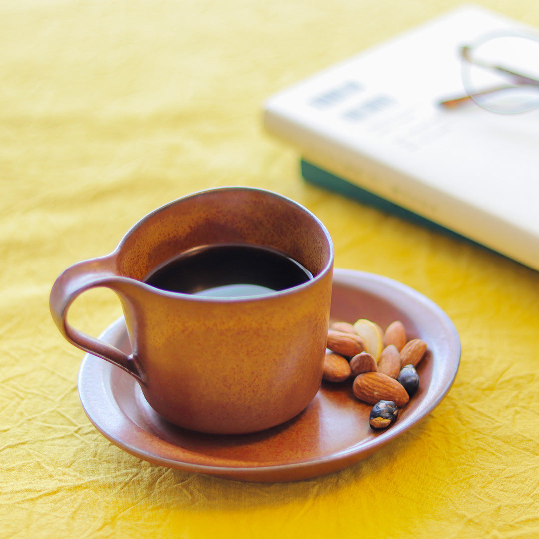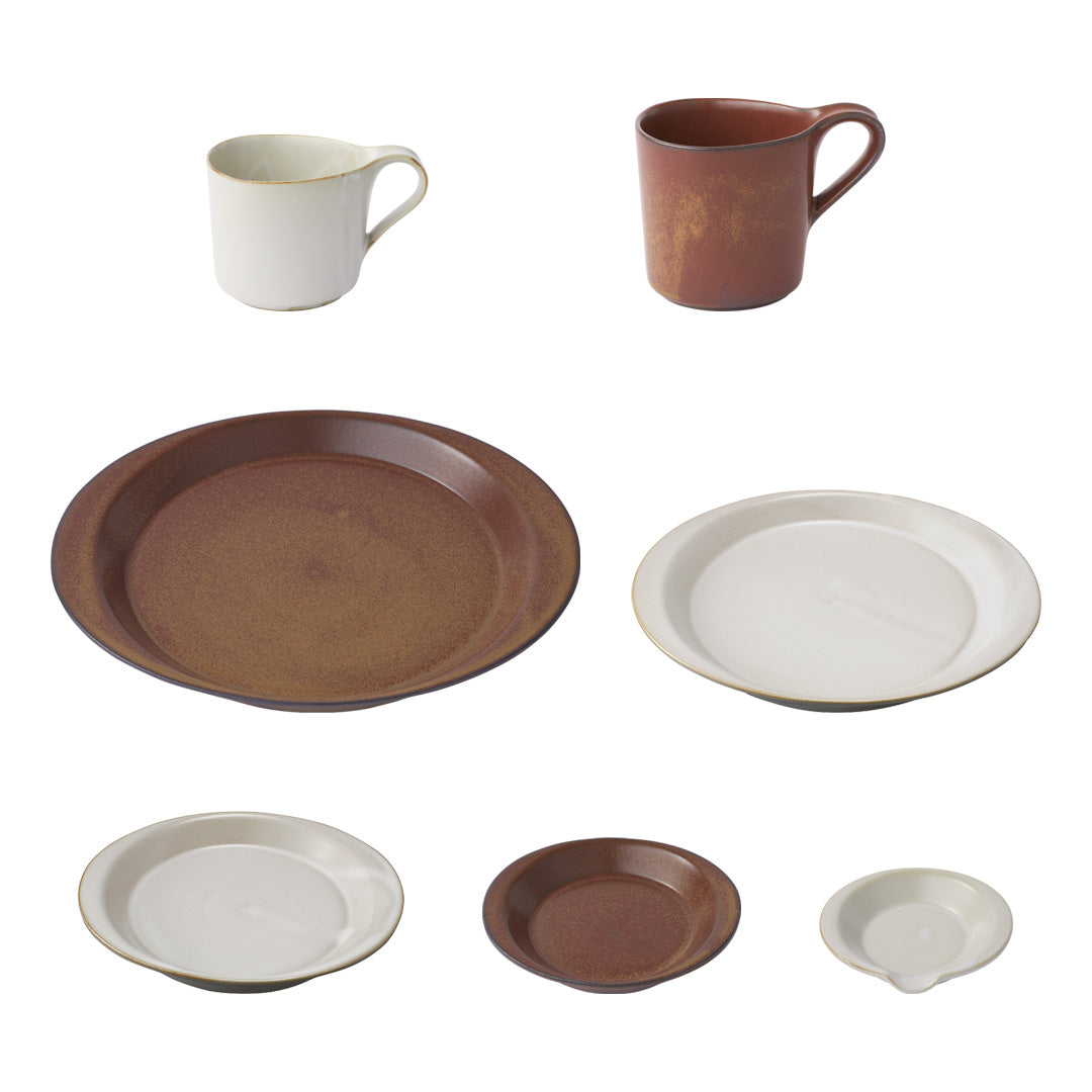 デュエットのプレートは、サイドにリムが付いた持ちやすいデザインが特徴です。Mサイズはカップと合わせてカップソーサーとしても使用できます。ブラウンは、黄色から赤茶色の幅広い表情が生まれる窯変の釉薬を使用しており、一つ一つ異なる表情が楽しめます。